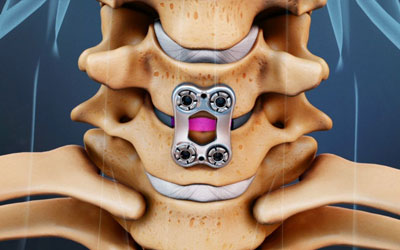 After the disc is removed, the space between the bony vertebrae is empty. To prevent the vertebrae from collapsing and rubbing together, a spacer bone graft is inserted to fill the open disc space. The graft serves as a bridge between the two vertebrae to create a spinal fusion. The bone graft and vertebrae are fixed in place with metal plates and screws. Following surgery the body begins its natural healing process and new bone cells grow around the graft. After 3 to 6 months, the bone graft should join the two vertebrae and form one solid piece of bone. The instrumentation and fusion work together, similar to reinforced concrete.