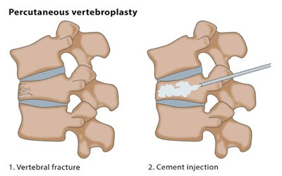 Specially formulated acrylic bone cement is injected under pressure directly into the fractured vertebra, filling the spaces within the bone - with the goal of creating a type of internal cast (a cast within the vertebra) to stabilize the vertebral bone.